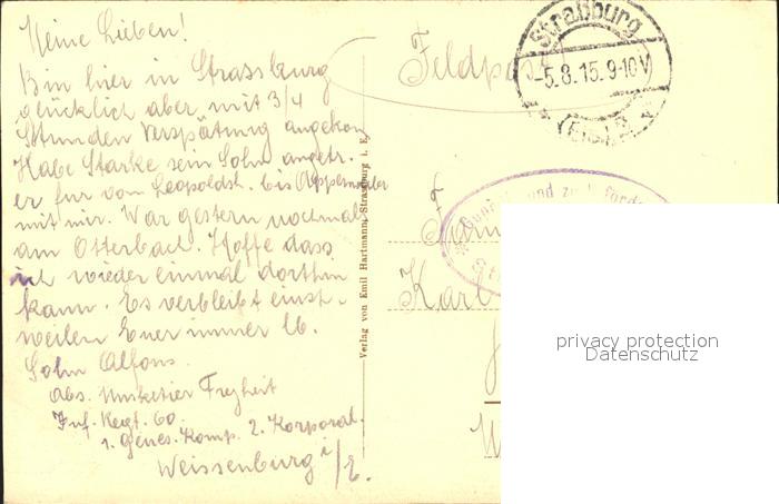 11913669 carte postale Strassburg Elsass Aufzug der Hauptwache Justizpalast und Kirche Jung St. Peter postalisch gelaufen Feldpost Erhaltung siehe scans KatCode: 11170067867482