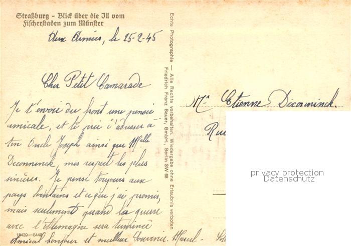 12935750 Strassburg Elsass Blick ueber die Ill vom Fischerstaden zum Muenster postalisch nicht gelaufen Erhaltung siehe scans [FriedD77] KatCode: 11170067867482