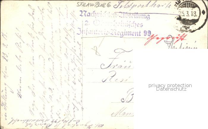 12300846 carte postale Strassburg Elsass wormser-weg WK 1 Unterstand Infanterie Regiment 99 postalisch gelaufen Feldpost Erhaltung siehe scans KatCode: 11170067867482