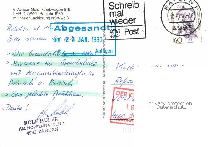 72729915 Strassenbahn 6-Achser-Gelenktriebwagen 519 LHB-Düwag Rahden KatCode 22040000000500