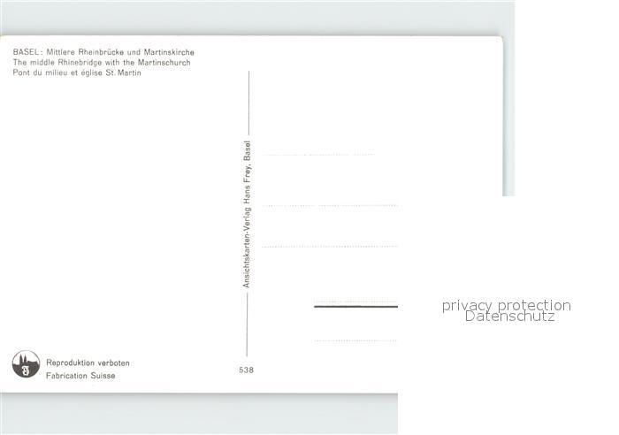 Strassenbahn Basel Mittlere Rheinbruecke Martinskirche postalisch nicht gelaufen Erhaltung siehe scans