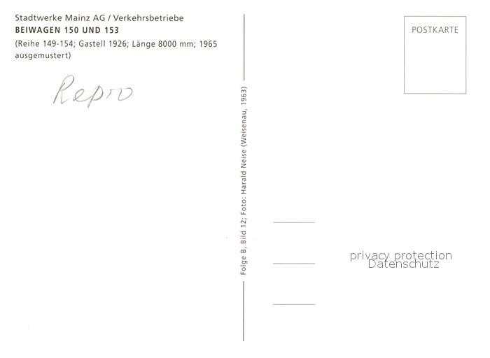 Strassenbahn Beiwagen 150 und 153 Mainz postalisch nicht gelaufen Erhaltung siehe scans [PaolaD17]