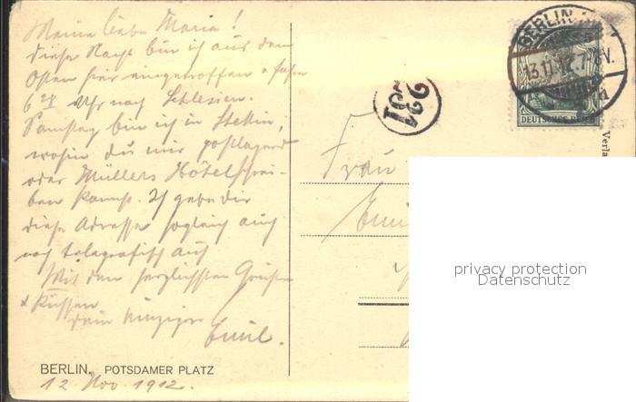 alte Postkarte Strassenbahn Berlin Potsdamer Platz postalisch gelaufen Erhaltung siehe scans
