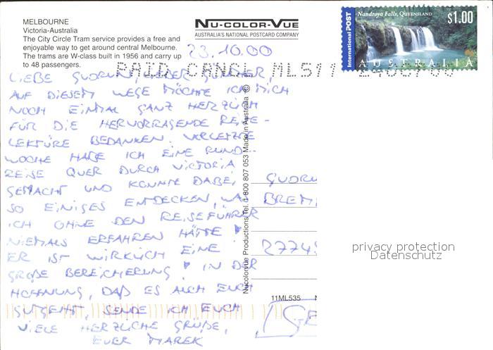 alte Postkarte Strassenbahn City Circle Tram Melbourne Victoria Australia postalisch gelaufen Erhaltung siehe scans
