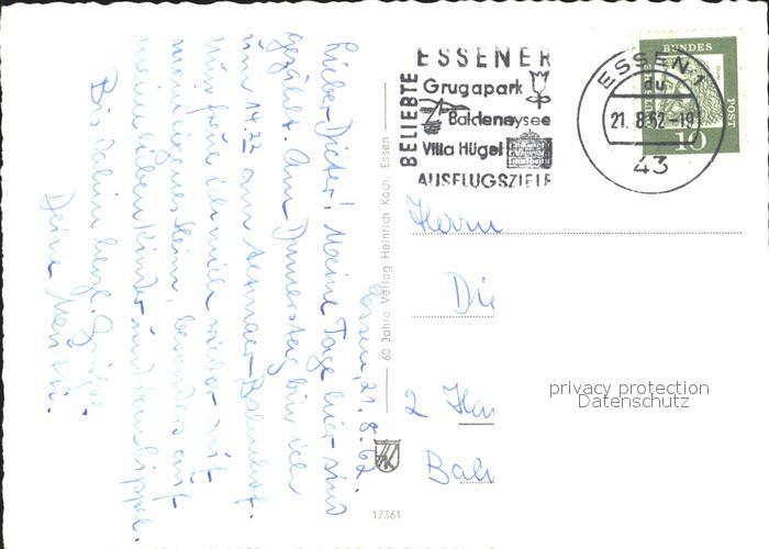 alte Postkarte Strassenbahn Essen Freiheit Gildenplatz Haus am Kopstadtplatz postalisch gelaufen Erhaltung siehe scans