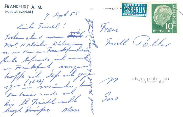 73854309 Strassenbahn Frankfurt a.M. Bahnhofvorplatz postalisch gelaufen Erhaltung siehe scans [IrynaD87] alte Postkarte Iryn Katcode 22040000000500