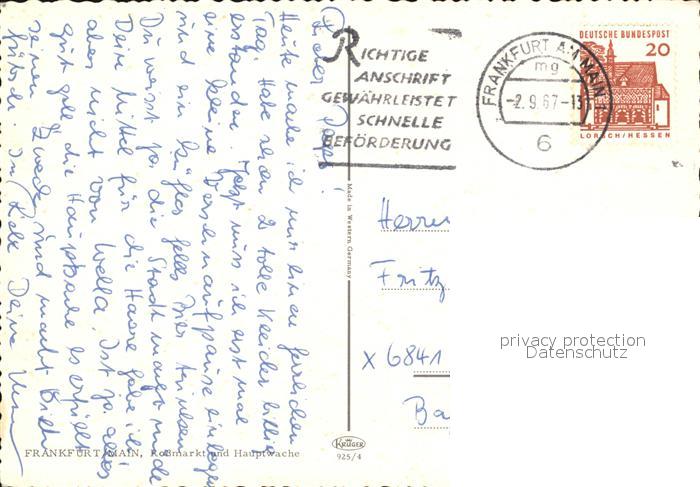 alte Postkarte Strassenbahn Frankfurt am Main Rossmarkt Hauptwache postalisch gelaufen Erhaltung siehe scans