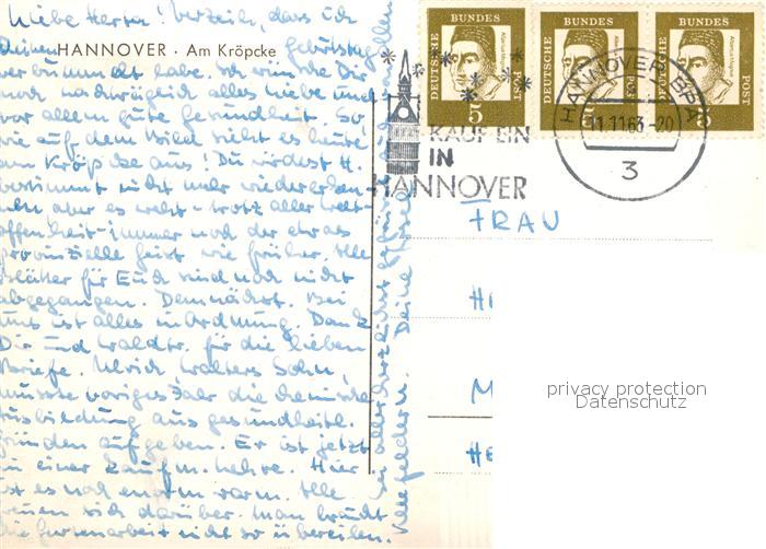 alte Postkarte Strassenbahn Hannover Am Kroepcke postalisch gelaufen Erhaltung siehe scans [PaolaD17]