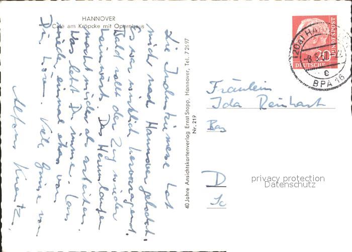 alte Postkarte Strassenbahn Hannover Cafe am Kroepcke Opernhaus postalisch gelaufen Erhaltung siehe scans