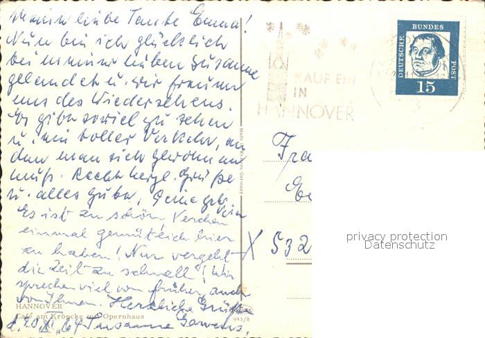 alte Postkarte Strassenbahn Hannover Cafe am Kroepcke Opernhaus postalisch gelaufen Erhaltung siehe scans
