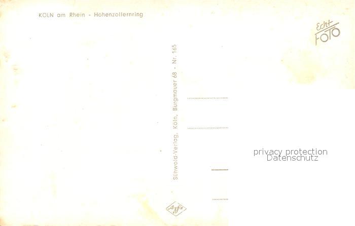 73483288 Strassenbahn Koeln am Rhein Hohenzollernring postalisch nicht gelaufen Erhaltung siehe scans [PaolaD17] Paol Katcode 22040000000500