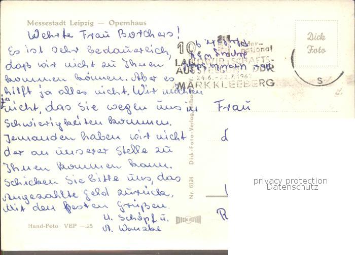 alte Postkarte Strassenbahn Leipzig Opernhaus postalisch gelaufen Erhaltung siehe scans