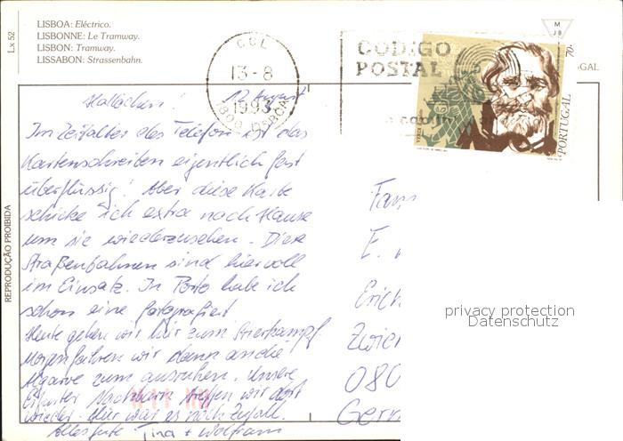 alte Postkarte Strassenbahn Lisboa Electrico postalisch gelaufen Erhaltung siehe scans [PaolaD17 kt110box]