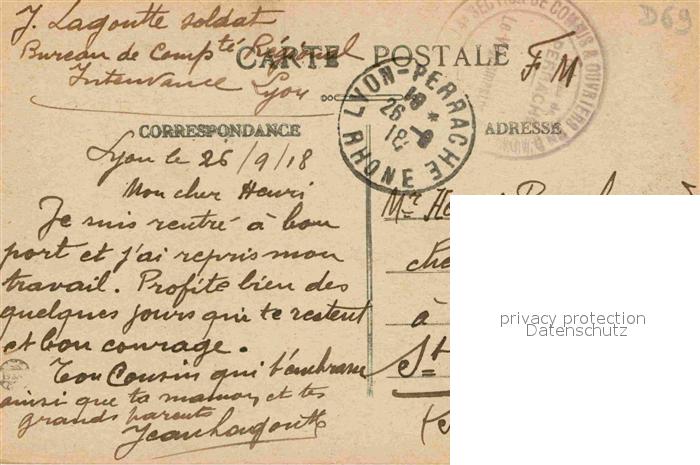 12875953 Strassenbahn Lyon Place Carnot Station des Tramways postalisch gelaufen Feldpost Erhaltung siehe scans [PaolaD17] Feldpost alte Postkarte Paol Katcode 22040000000500