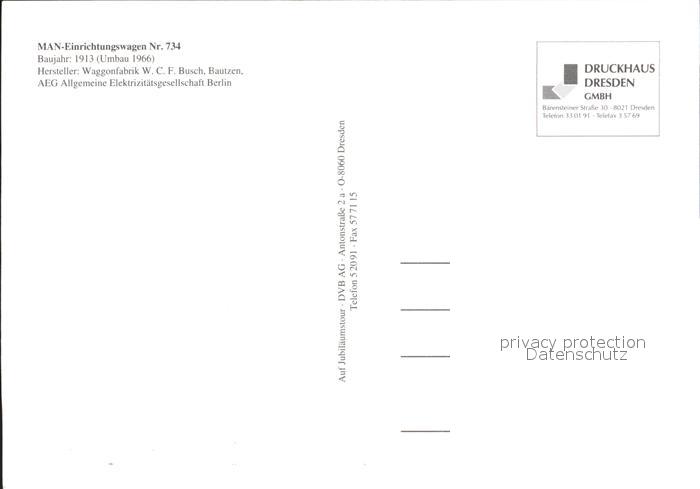 Strassenbahn MAN-Einrichtungswagen Nr. 734 120 Jahre Strassenbahn Dresden postalisch nicht gelaufen Erhaltung siehe scans