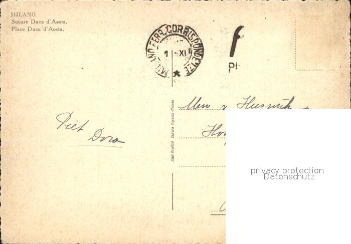 alte Postkarte Strassenbahn Milano Piazzale Duca d Aosta postalisch gelaufen Erhaltung siehe scans