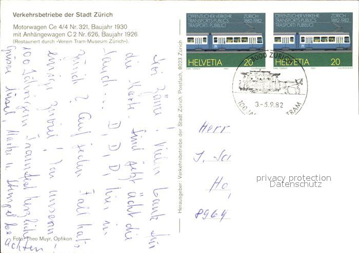 alte Postkarte Strassenbahn Motorwagen Ce 4/4 Nr. 321 Zuerich postalisch gelaufen Erhaltung siehe scans