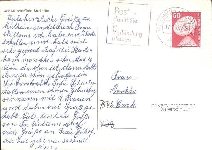 alte Postkarte Strassenbahn Muelheim Ruhr Stadtmitte postalisch gelaufen Erhaltung siehe scans