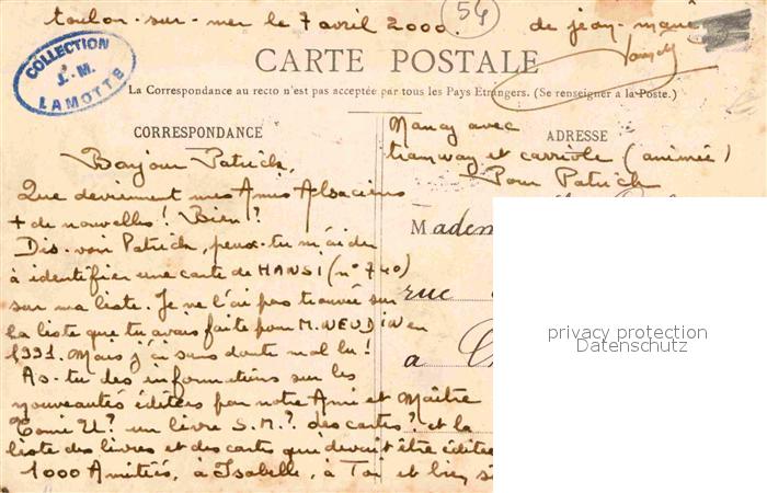 12642305 Strassenbahn Nancy Temple Protestant Place St.-Jean postalisch gelaufen Erhaltung siehe scans [PaolaD17] alte Postkarte Paol Katcode 22040000000500