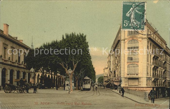 alte Postkarte Strassenbahn Nice Boulevard Mac-Mahon postalisch gelaufen Erhaltung siehe scans