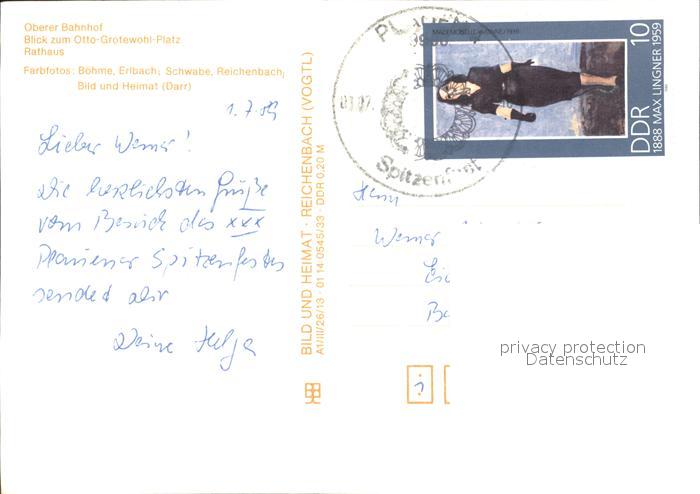 alte Postkarte Strassenbahn Plauen Bahnhof Otto-Grotewohl-Platz Rathaus postalisch gelaufen Erhaltung siehe scans