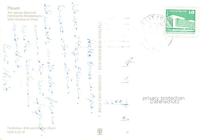 alte Postkarte Strassenbahn Plauen Oberer Bahnhof Otto-Grotewohl-Platz postalisch gelaufen Erhaltung siehe scans [PaolaD17]