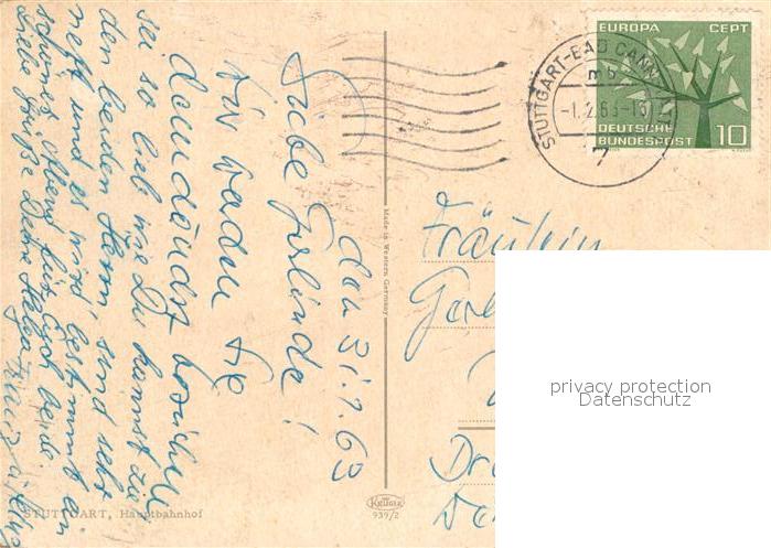 alte Postkarte Strassenbahn Stuttgart Hauptbahnhof postalisch gelaufen Erhaltung siehe scans [PaolaD17]