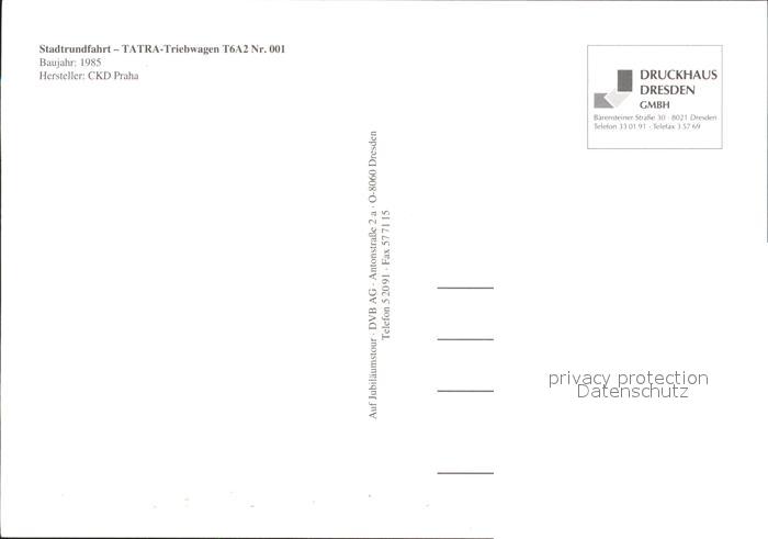 72360481 Strassenbahn TATRA-Triebwagen T6A2 Nr. 001 120 Jahre Strassenbahn Dresden KatCode 22040000000500