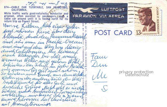 74154301 alte Postkarte STRAssENBAHN Tramway– Cable Car Turntable San Francisco California postalisch gelaufen Erhaltung siehe scans [SanaeD93] KatCode: 22040000000500