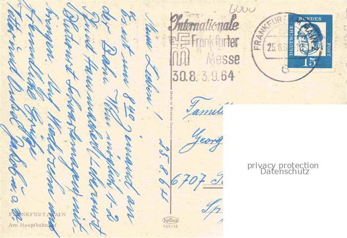 74077270 alte Postkarte STRAssENBAHN Tramway– Frankfurt am Main Hauptbahnhof postalisch gelaufen Erhaltung siehe scans [IrynaD87] KatCode: 22040000000500