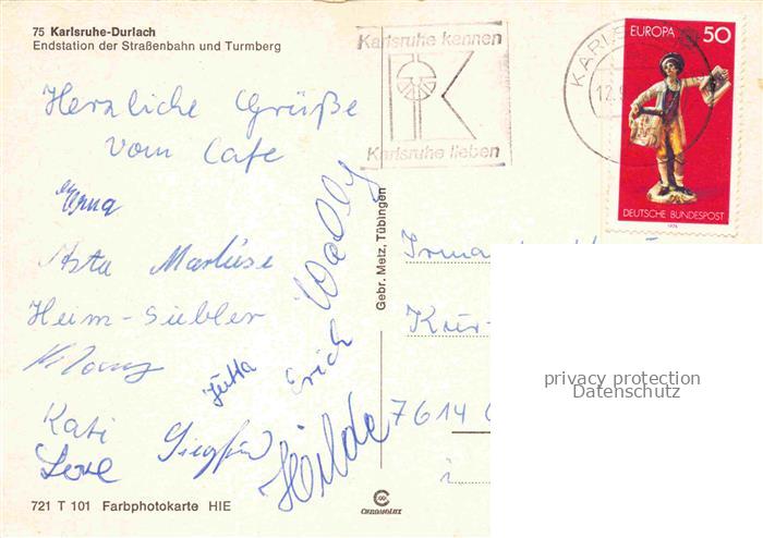 74150538 alte Postkarte STRAssENBAHN Tramway– Karlsruhe Durlach Endstation Turmberg postalisch gelaufen Erhaltung siehe scans [IrynaD87] KatCode: 22040000000500