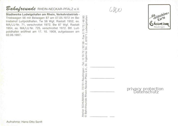 74052936 STRAssENBAHN Tramway– Ludwigshafen Rhein Neckar Platz Triebwagen postalisch nicht gelaufen Erhaltung siehe scans [IrynaD87] KatCode: 22040000000500