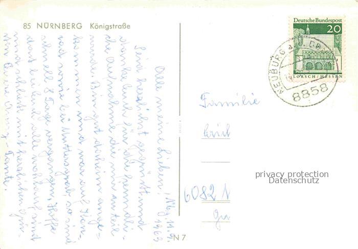 74050608 alte Postkarte Strassenbahn Tramway– Nuernberg Koenigstrasse postalisch gelaufen Erhaltung siehe scans [SanaeD93] KatCode: 22040000000500