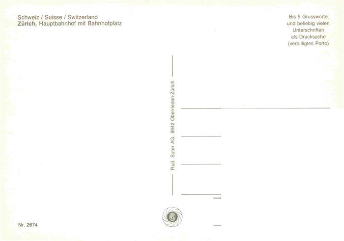 74027847 Strassenbahn Tramway– Schweiz Zuerich Hauptbahnhof Bahnhofplatz postalisch nicht gelaufen Erhaltung siehe scans [IrynaD87] KatCode: 22040000000500