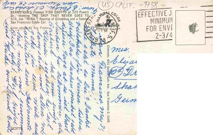 74026023 alte Postkarte Strassenbahn Tramway– Sea Nina San Francisco USA California postalisch gelaufen Erhaltung siehe scans [SanaeD93] KatCode: 22040000000500