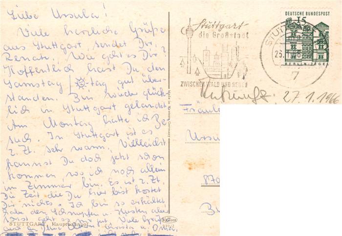 73928164 alte Postkarte Strassenbahn Tramway– Stuttgart Hauptbahnhof postalisch gelaufen Erhaltung siehe scans [IrynaD87] KatCode: 22040000000500