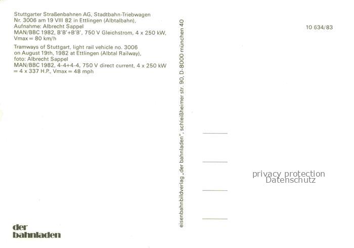 STRAssENBAHN Tramway– Stuttgart Stadtbahn Triebwagen postalisch nicht gelaufen Erhaltung siehe scans [SanaeD93] Sana Katcode 22040000000500