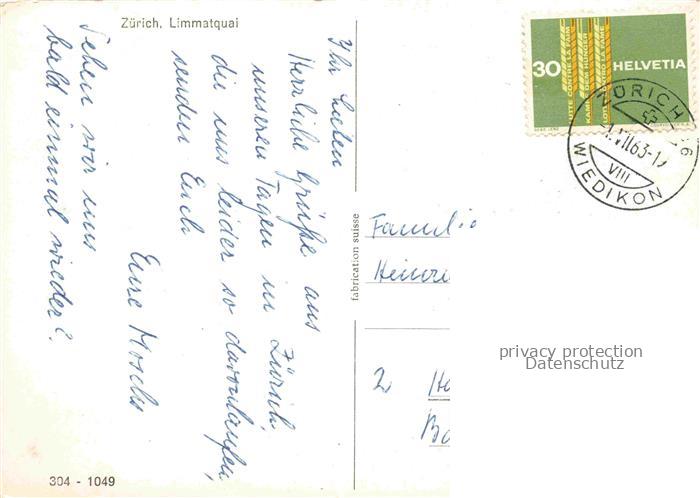 74012317 alte Postkarte Strassenbahn Tramway– Zuerich Limmatquai postalisch gelaufen Erhaltung siehe scans [IrynaD87] KatCode: 22040000000500