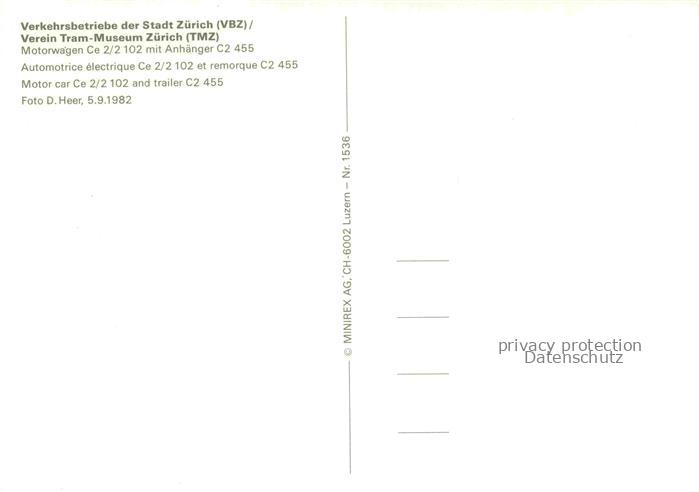 74052942 STRAssENBAHN Tramway– Zuerich VBZ TMZ Motorwagen Ce 2/2 102 postalisch nicht gelaufen Erhaltung siehe scans [IrynaD87] KatCode: 22040000000500