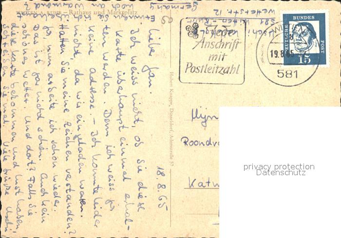 alte Postkarte Strassenbahn Witten an der Ruhr Rathaus Marktplatz postalisch gelaufen Erhaltung siehe scans