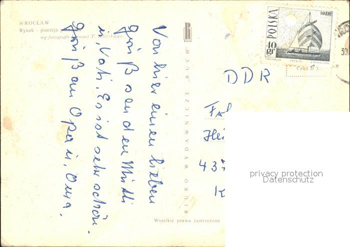 alte Postkarte Strassenbahn Wroclaw Rynek pierzeja polnocna postalisch gelaufen