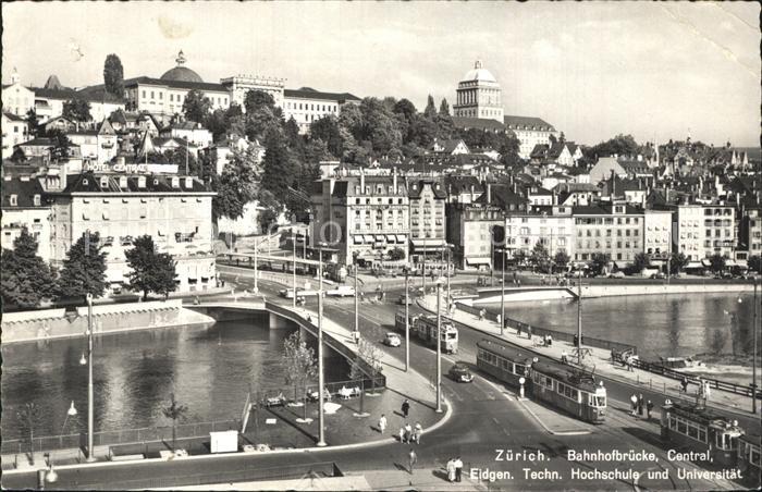 alte Postkarte Strassenbahn Zuerich Bahnhofbruecke Central Hochschule Universitaet postalisch gelaufen Erhaltung siehe scans