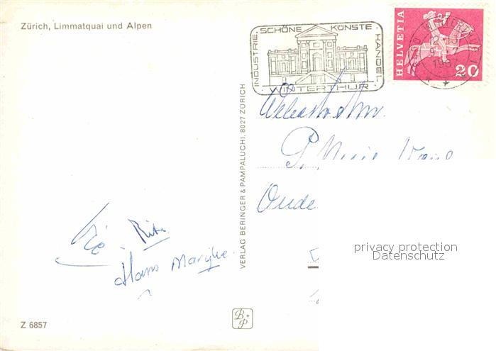 alte Postkarte Strassenbahn Zuerich Limmatquai Alpen postalisch gelaufen Erhaltung siehe scans [PaolaD17]