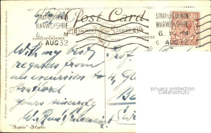old postcard Stratford-on-Avon New Shakespeare Memorial Theatre postalisch gelaufen Erhaltung siehe scans