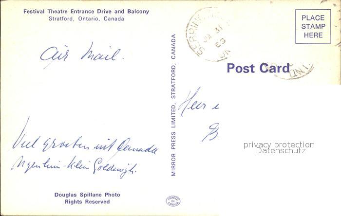 old postcard Stratford Ontario Festival Theatre Entrance Drive postalisch gelaufen Erhaltung siehe scans