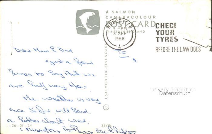 old postcard Stratford-Upon-Avon River Avon and Royal Shakespeare Theatre postalisch gelaufen Erhaltung siehe scans