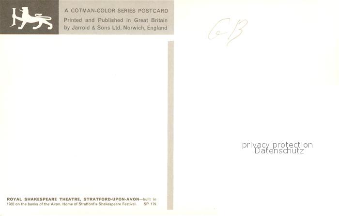 73278132 Stratford-Upon-Avon Royal Shakespeare Theatre postalisch nicht gelaufen Erhaltung siehe scans [LiesaD40] KatCode: 11570
