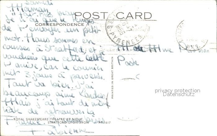 old postcard Stratford-Upon-Avon Shakespeare Theatre postalisch gelaufen Erhaltung siehe scans