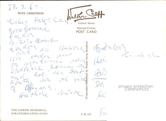 Stratford-Upon-Avon The Gower Memorial postalisch nicht gelaufen Erhaltung siehe scans