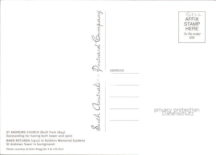 Strathalbyn St Andrews Church Rainbow Band Rotunda Soldiers Memorial Gardens St Andrews Tower postalisch nicht gelaufen Erhaltung siehe scans